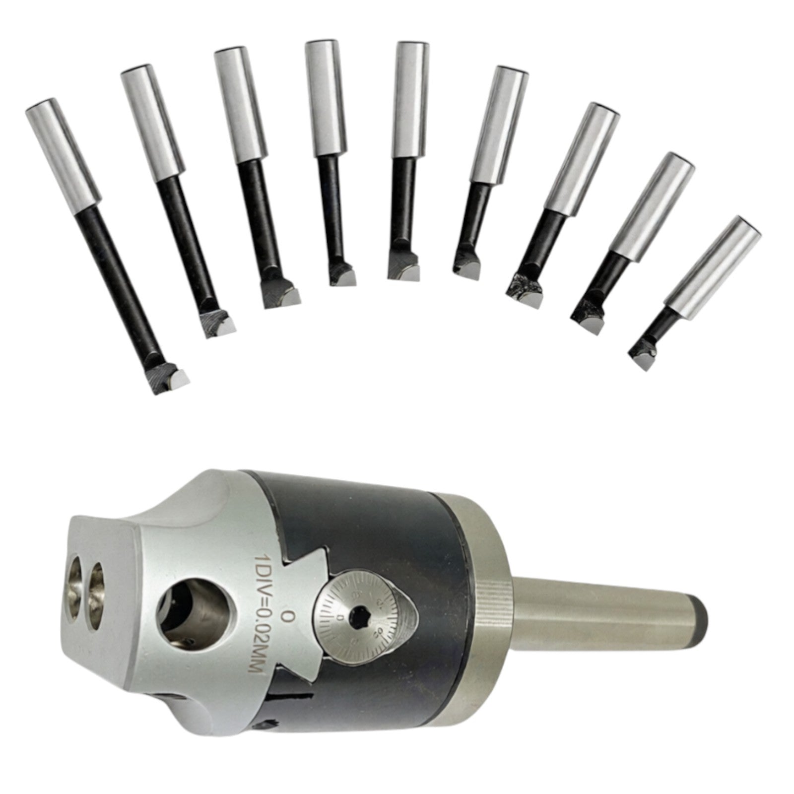 Minimum graduation of 0.02mm enables precise diameter adjustments for high-tolerance boring applications.